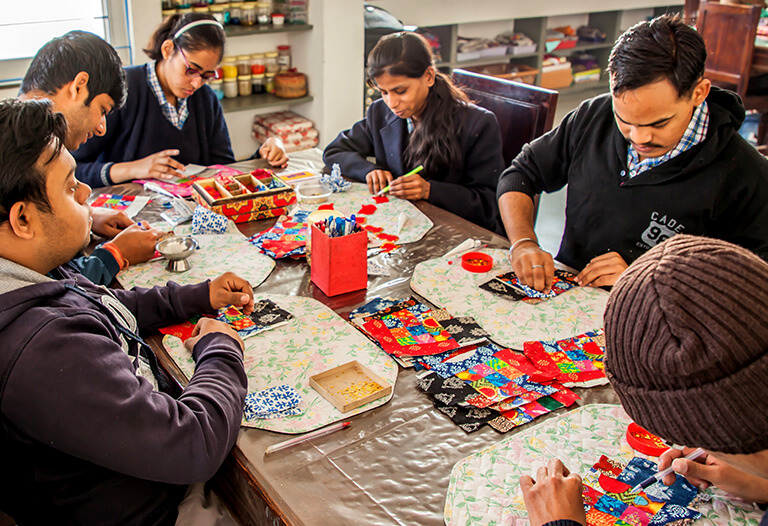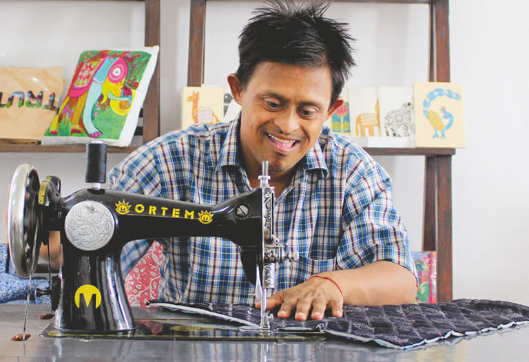 Job orders are taken and products are made as per industry standards. Close supervision ensures quality. Products made in the unit are exported and sold in boutiques. All young adults with disabilities working in the unit start with minimum wages and get regular increments. All payments are made through cheque and everyone has a bank account. This instills in them a sense of financial independence and boost their self confidence.